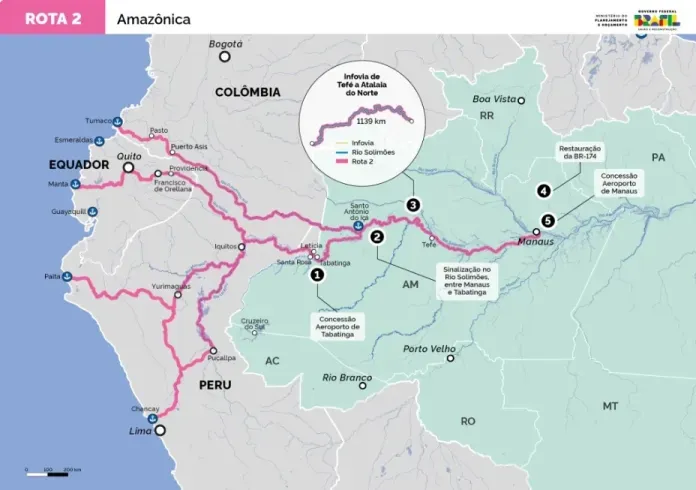 As quatro alternativas de rotas propostas são multimodais, começando por hidrovias e terminando em rodovias. No Brasil, duas intervenções são essenciais para a concretização do projeto: a sinalização do Rio Solimões, prevista para ser concluída entre o final de 2024 e o início de 2025, e a instalação de aduanas em Tabatinga e Santo Antonio do Içá, que facilitarão o trânsito de mercadorias.